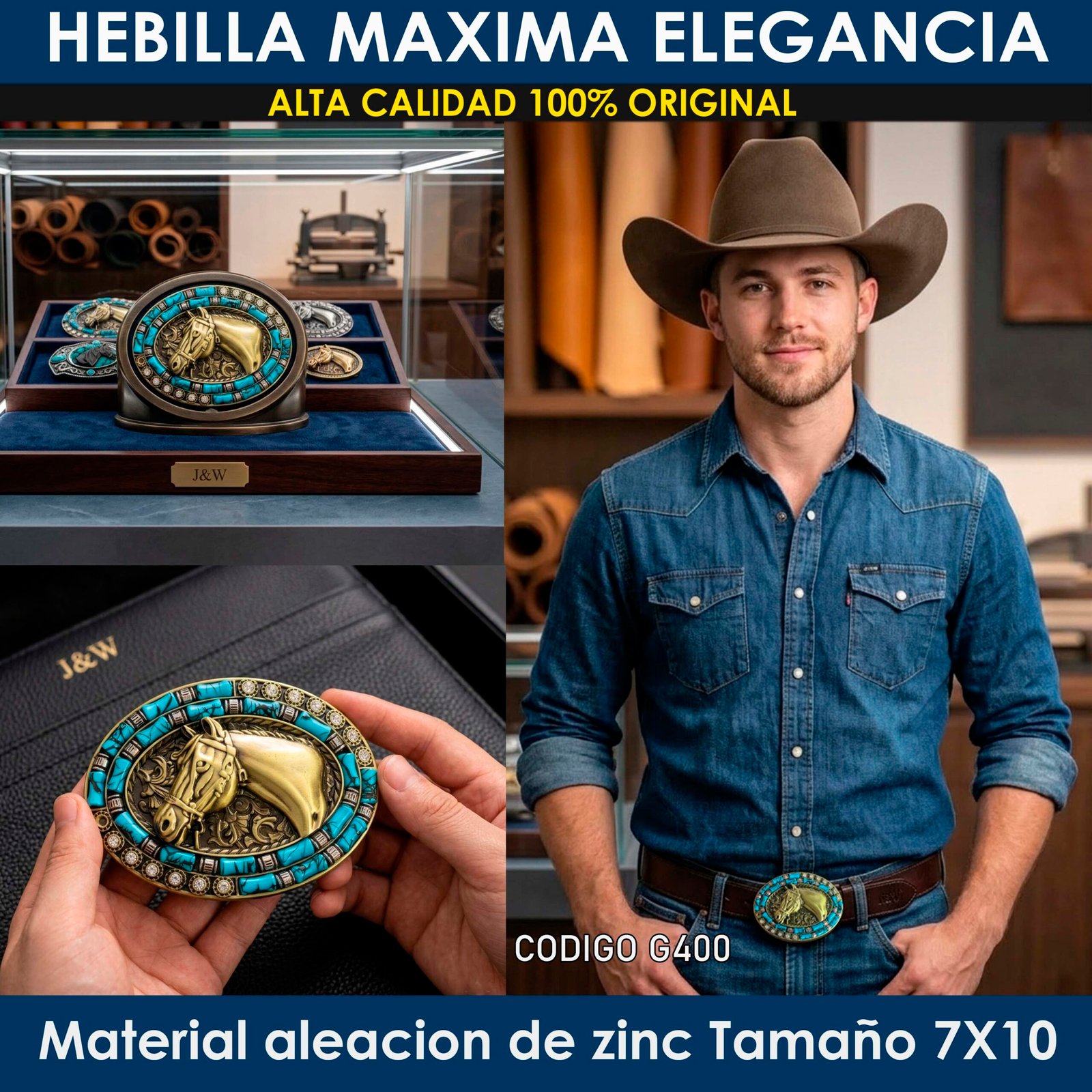 Una pieza inspirada en la fuerza y nobleza del caballo, combinada con detalles en tonos turquesa que evocan tradición y distinción. Ideal para quienes viven con actitud firme y estilo propio.