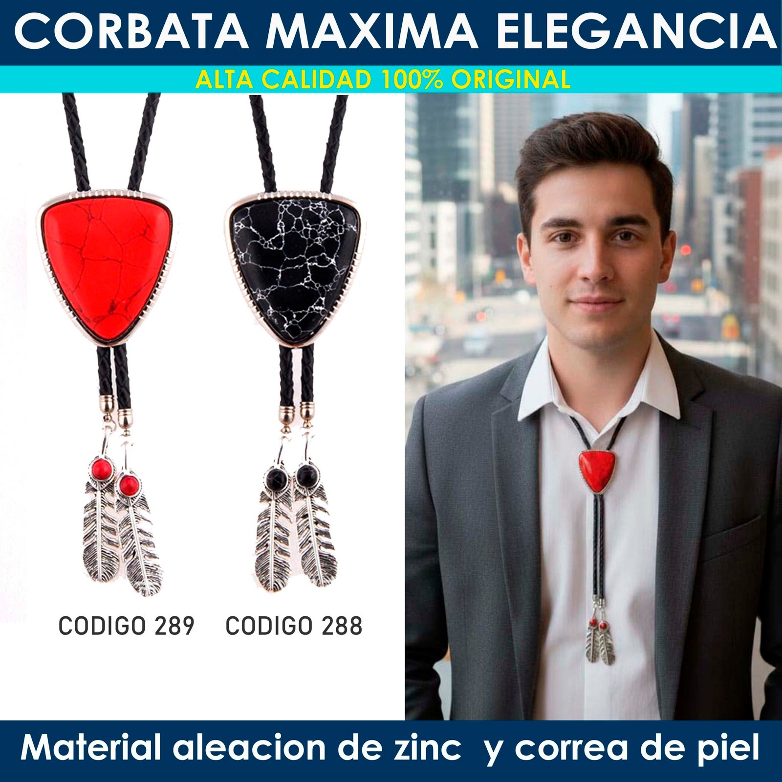Destaca con esta corbata bolo en forma de diamante, disponible en color rojo o negro, embellecida con piedras naturales que aportan un brillo auténtico y sofisticado.