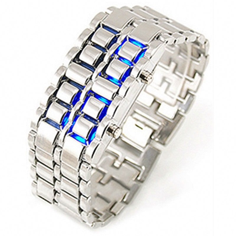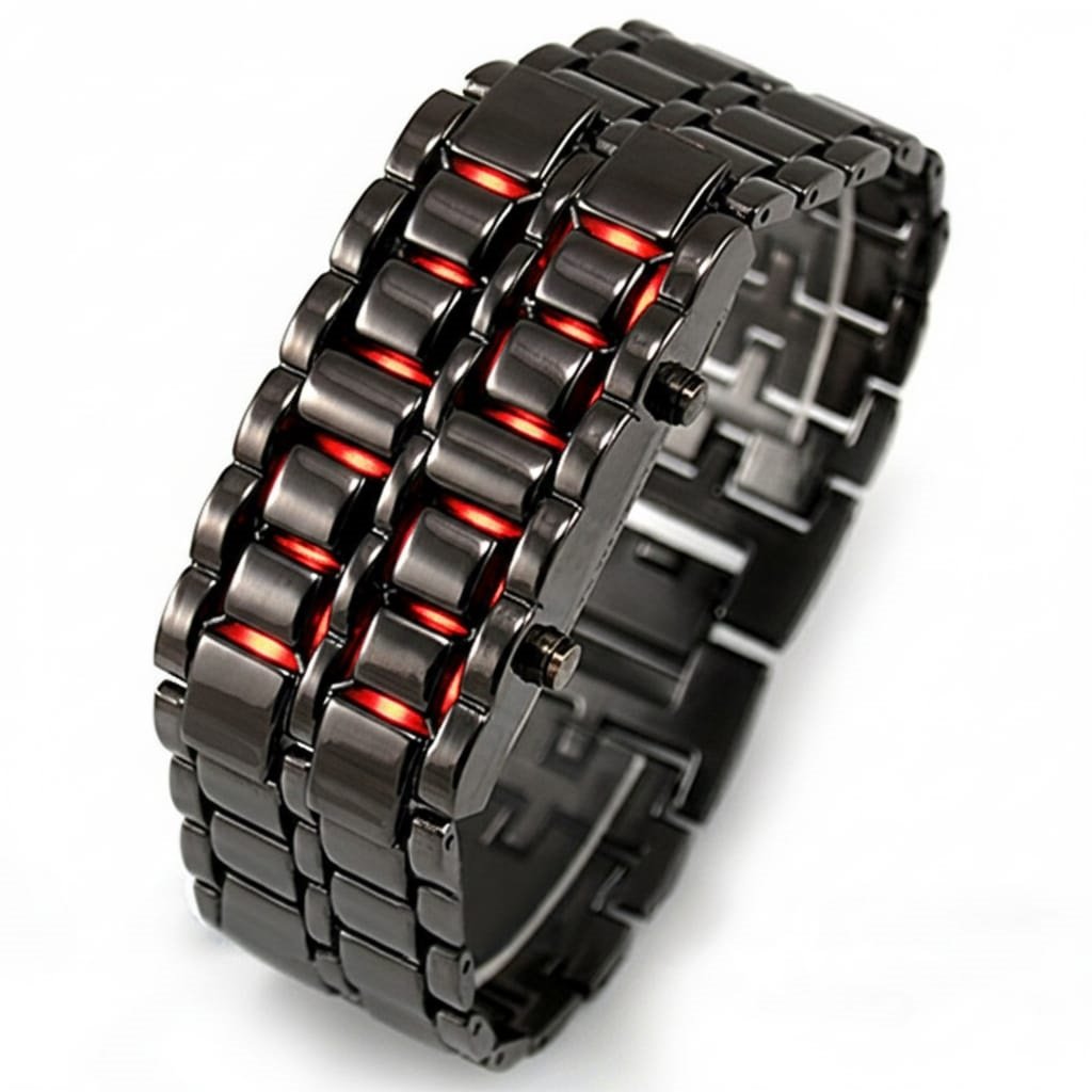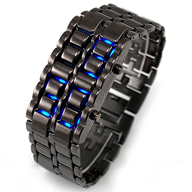 PULSERA NEGRA FUTURISTA NUMEROS LED AZUL Y ROJA